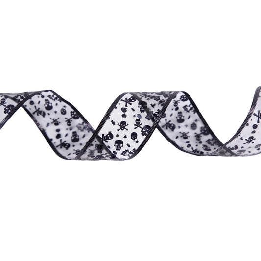10m Halloween Decoration Gold-stamped Cartoon DIY Bow Ribbon(Silver Skeleton)