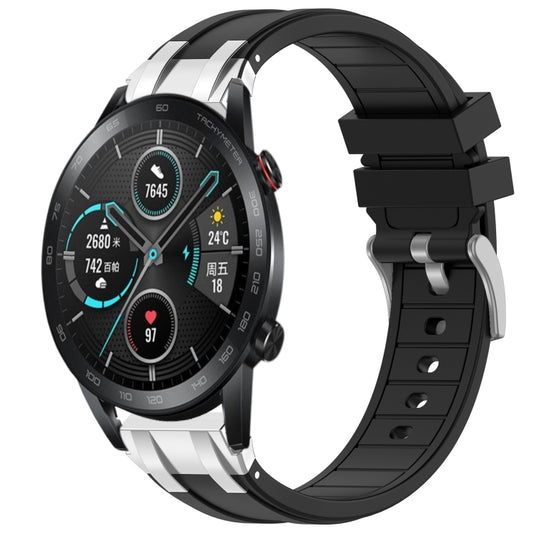 For Honor Magic Watch 2 42mm 20mm Quick Release Silver Buckle Royal Silicone Watch Band(Black)