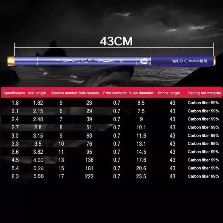 6.3m Pocket Telescopic Short Section Fishing Rod Carbon Stream Ultra Light Super Hard Mini Fishing Hand Pole