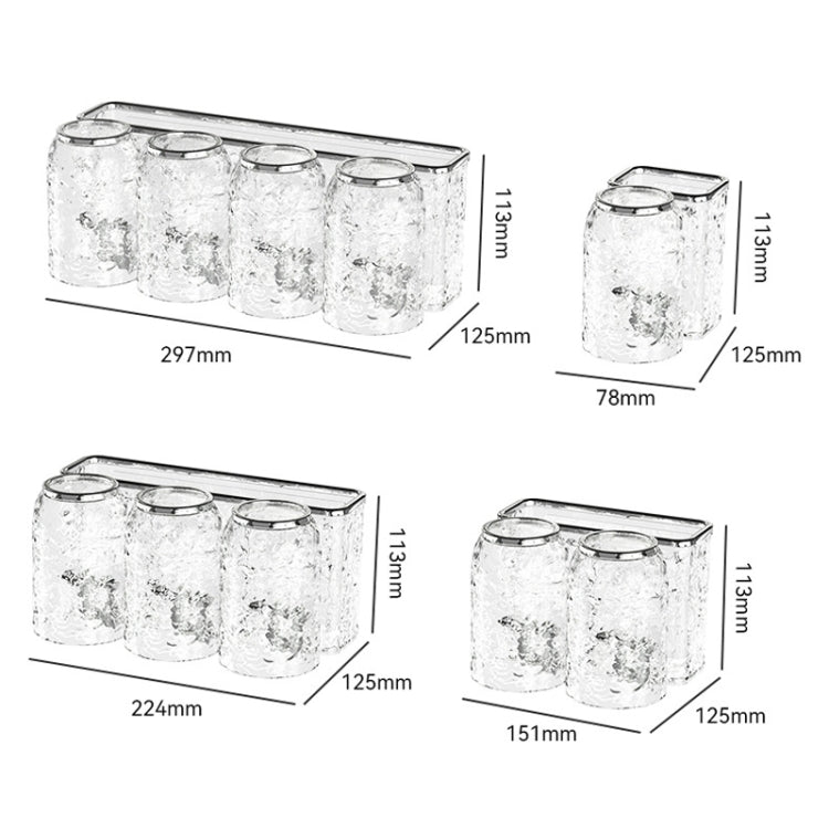 8. Size: single cup 78 x 125 x 113mm; double cup 151 x 125 x 113mm; three cups 224 x 125 x 113mm; four cups 297 x 125 x 113mm