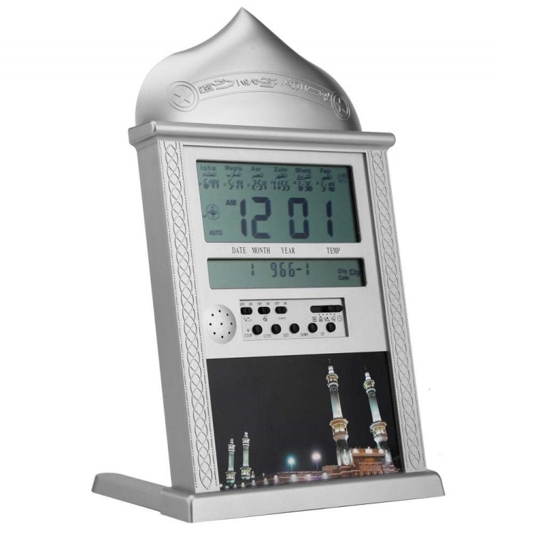 Desktop Perpetual Calendar Alarm Clock LCD Display Reminder Prayer Clock(Silver)