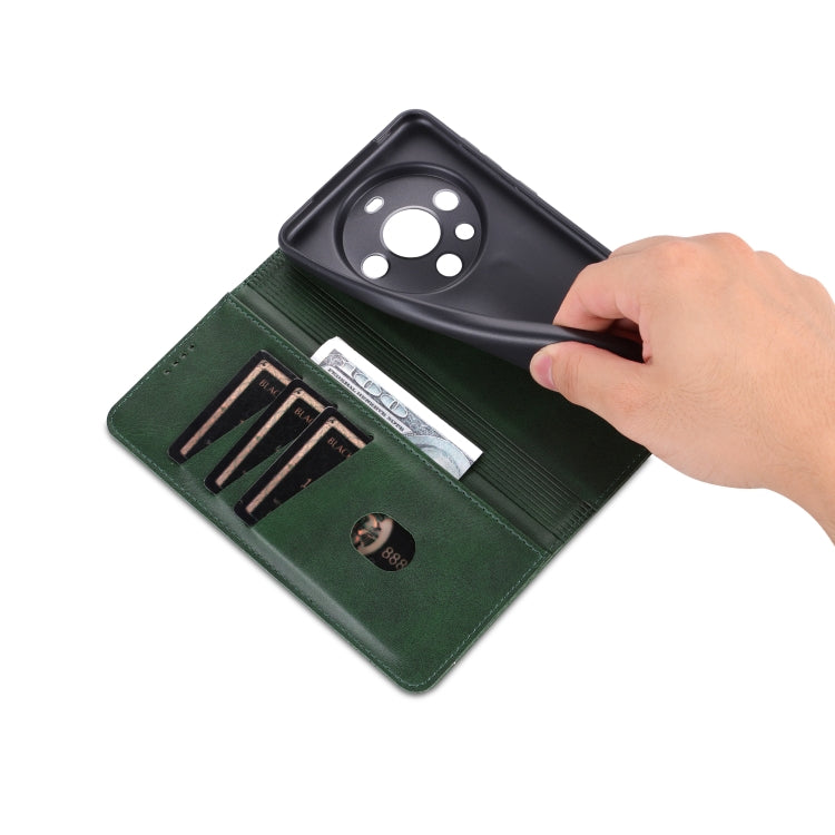 For Huawei Mate 60 AZNS Magnetic Calf Texture Flip Leather Phone Case(Dark Green)
