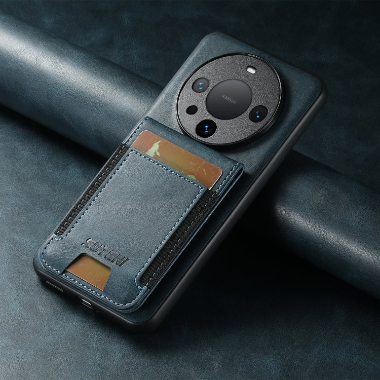 For Huawei Mate 60 Pro Suteni H03 Oil Wax Leather Wallet Stand Back Phone Case(Blue)