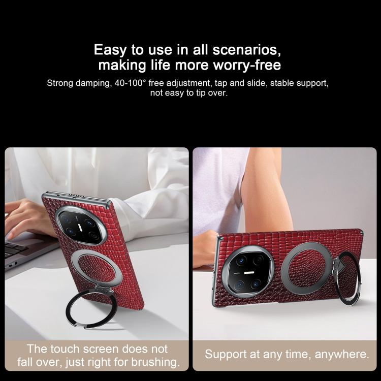 For Huawei Mate X6 SULADA Crocodile Texture Genuine Leather MagSafe Holder Phone Case(Black)