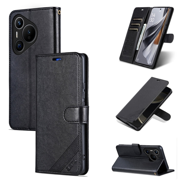 For Huawei Pura 70 AZNS Sheepskin Texture Flip Leather Phone Case(Black)