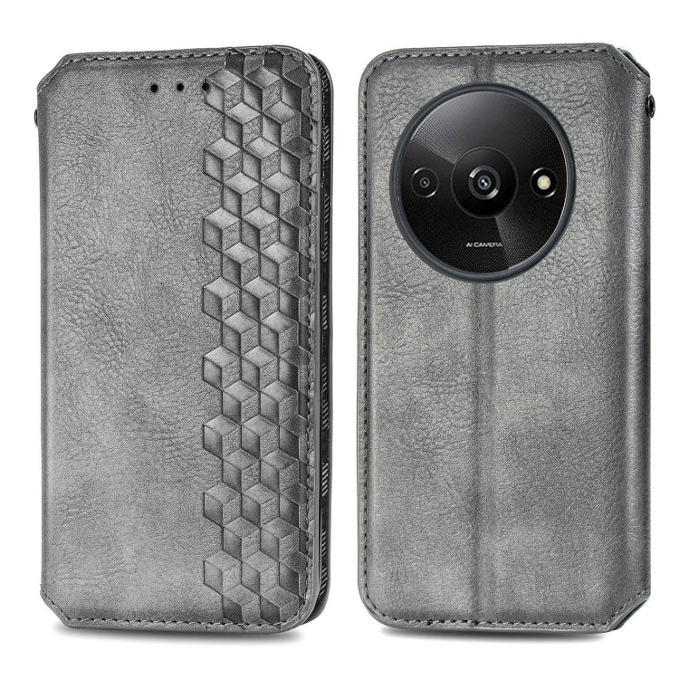 For Xiaomi Redmi A3 Cubic Grid Pressed Magnetic Leather Phone Case(Grey)