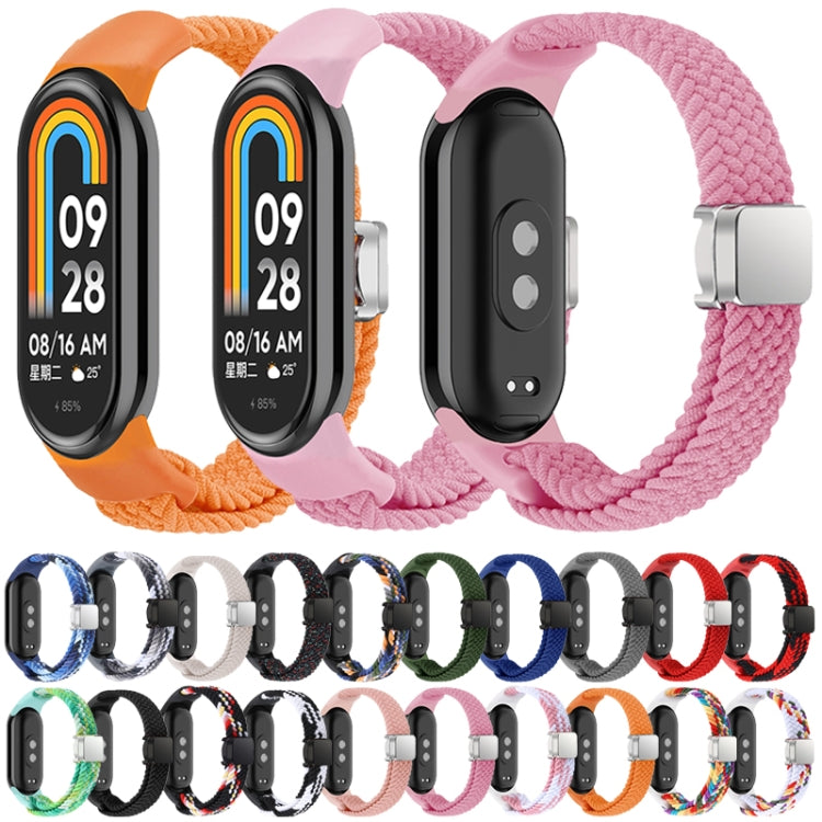 For Xiaomi Smart Band 9 / 8 Nylon Braided Loop Magnetic Buckle Integrated Watch Band(White Rainbow)