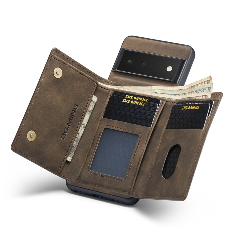 For Google Pixel 6 Pro DG.MING M1 Series 3-Fold Multi Card Wallet Back Cover Leather Phone Case(Coffee)