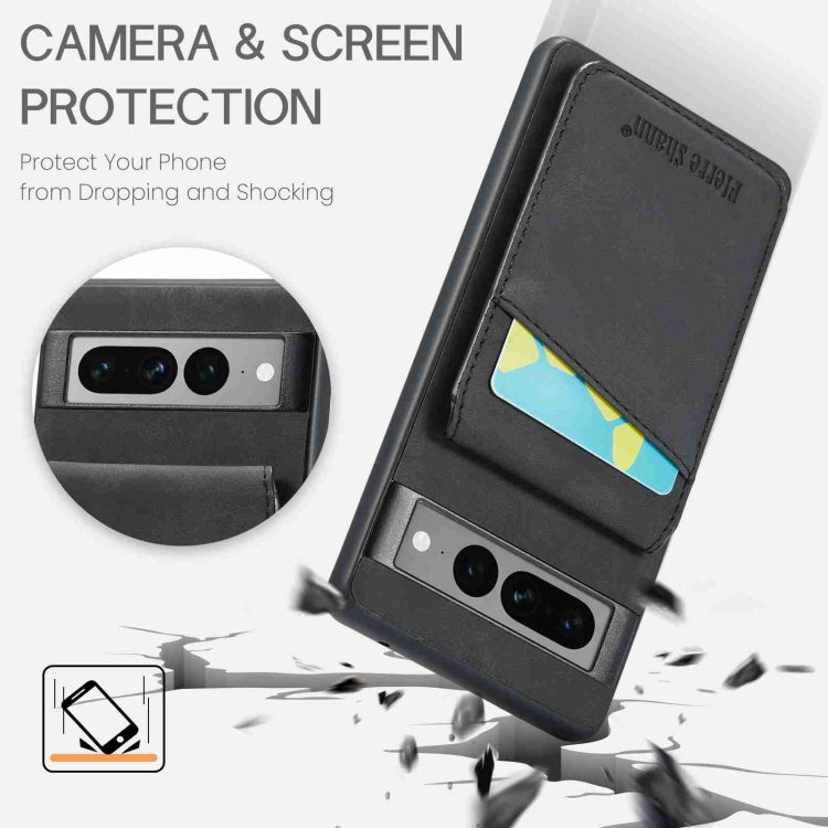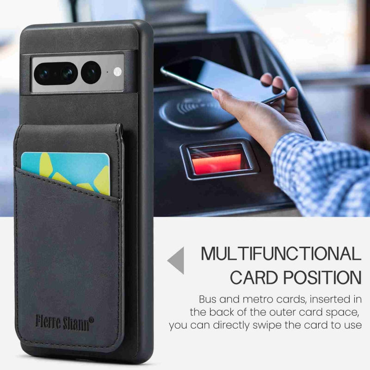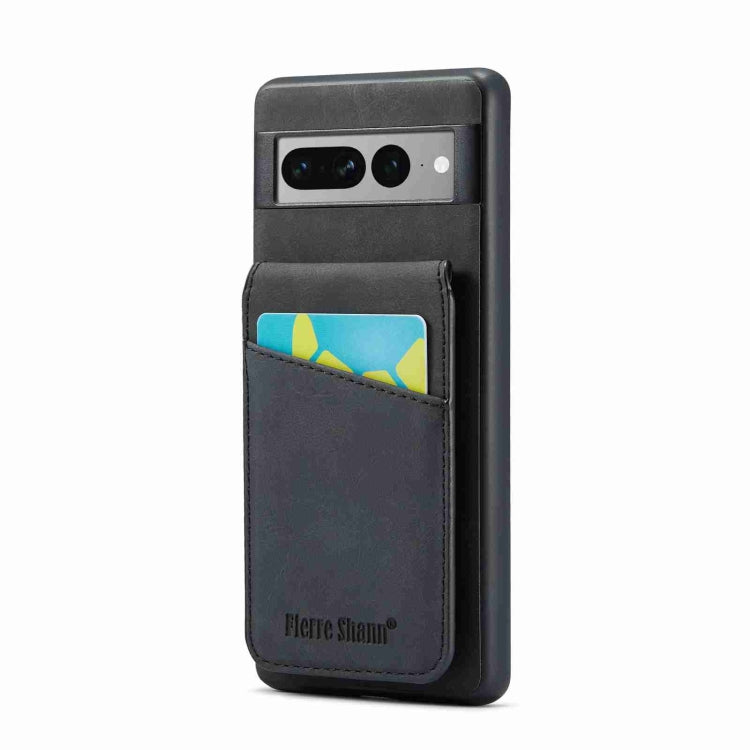 For Google Pixel 7 Pro Fierre Shann Crazy Horse Card Holder Back Cover PU Phone Case(Black)