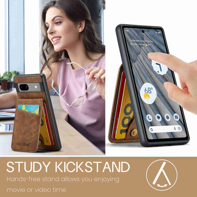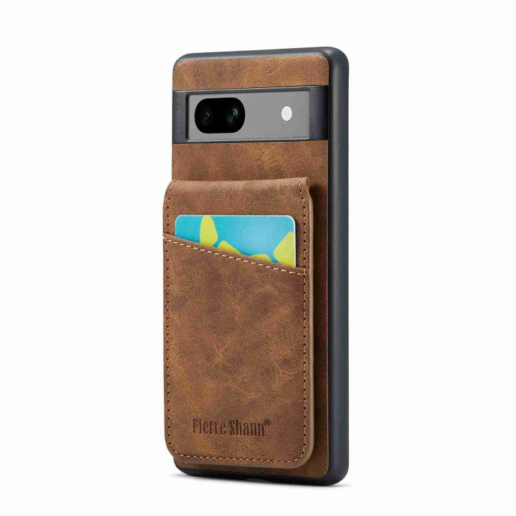 For Google Pixel 8 Fierre Shann Crazy Horse Card Holder Back Cover PU Phone Case(Brown)