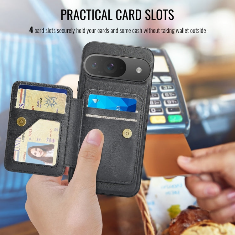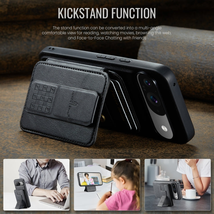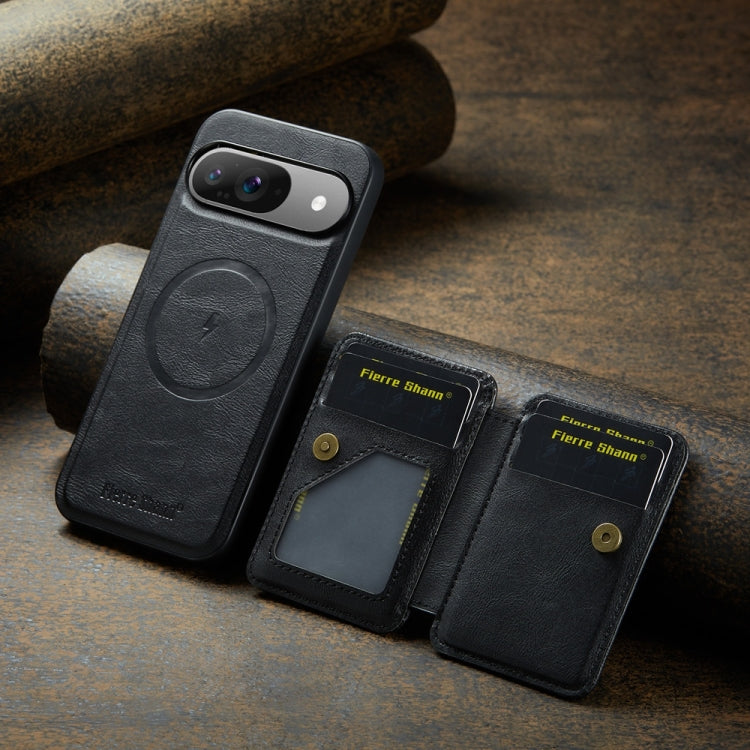 For Google Pixel 9 / 9 Pro Fierre Shann Cowhide Horizontal Flip Magnetic Card Holder Phone Case(Black)