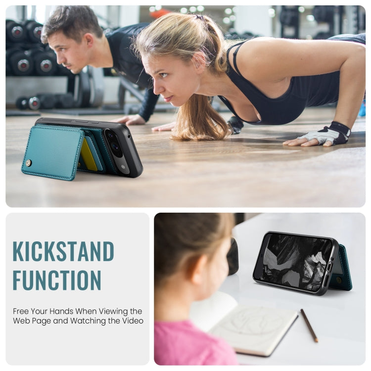 For Google Pixel 9 / 9 Pro JEEHOOD J05 Business Magnetic Style RFID Leather Phone Case(Blue Green)