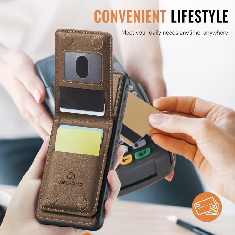 For Google Pixel 9 / 9 Pro JEEHOOD J06 British Style RFID MagSafe Card Bag PU Phone Case(Brown)