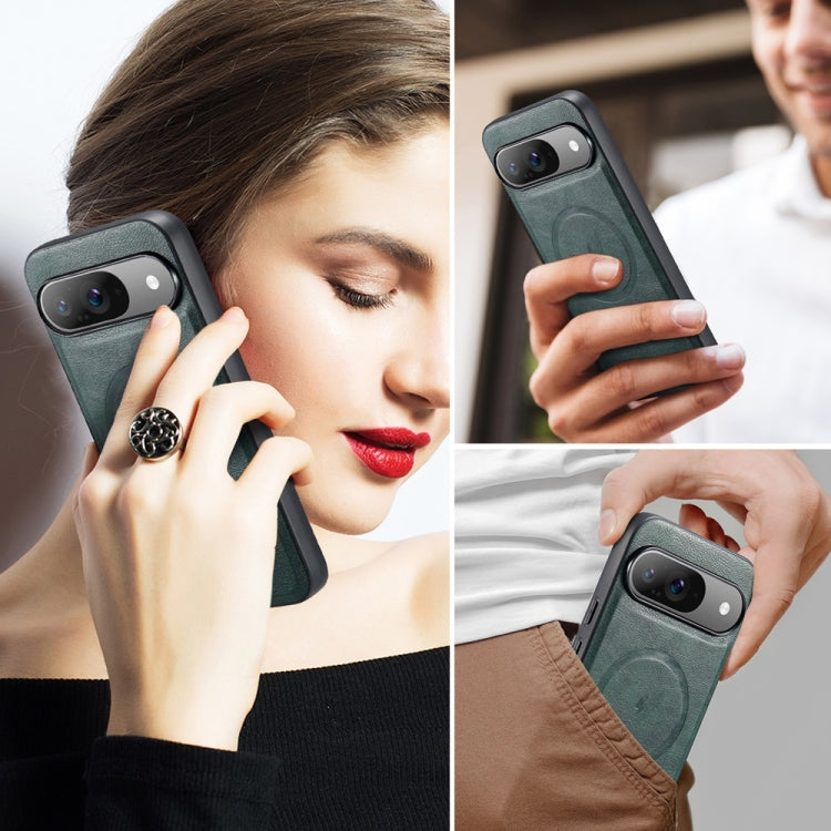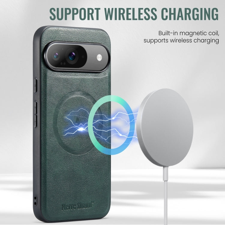For Google Pixel 9 Pro XL Fierre Shann Cowhide Texture MagSafe Magnetic Phone Case(Green)