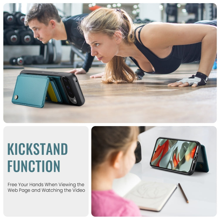 For Google Pixel 9 Pro XL JEEHOOD J05 Business Magnetic Style RFID Leather Phone Case(Blue Green)