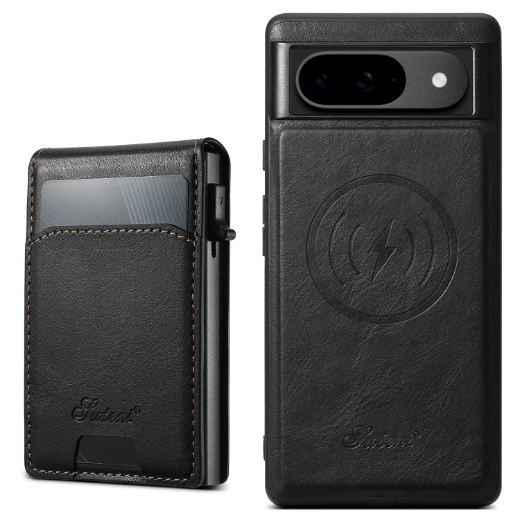 For Google Pixel 9 Suteni H19 Oil Wax 2-in-1 MagSafe Removable Card Box Back Phone Case(Black)