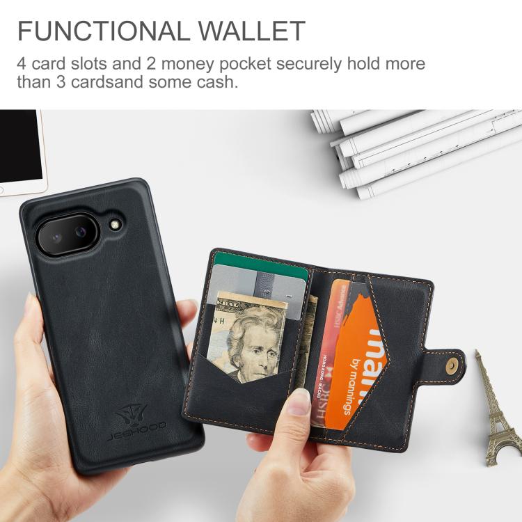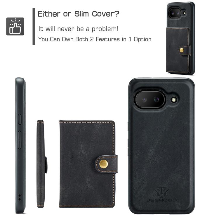 For Google Pixel 9a JEEHOOD J01 Retro Magnetic Detachable Wallet Phone Case(Black)