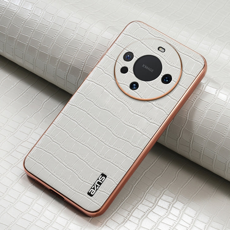 For Huawei Mate 60 / 60 Pro+ AZNS Electroplated Frame Crocodile Texture Full Coverage Phone Case(White)