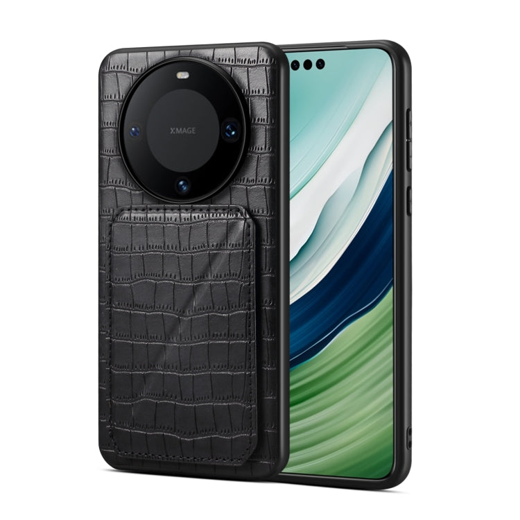 For Huawei Mate 60 Denior Crocodile Texture Holder Electroplating Phone Case(Black)
