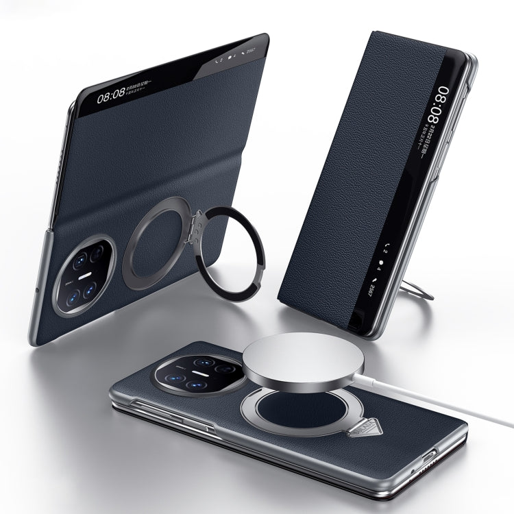 For Huawei Mate X5 / X3 SULADA Smart View Window MagSafe Magnetic Holder Leather Phone Case(Blue)