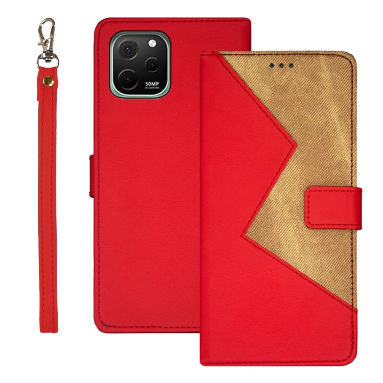 For Huawei nova Y61 4G idewei Two-color Splicing Leather Phone Case(Red)