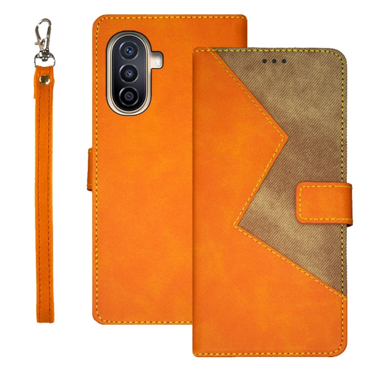For Huawei nova Y71 idewei Two-color Splicing Leather Phone Case(Orange)