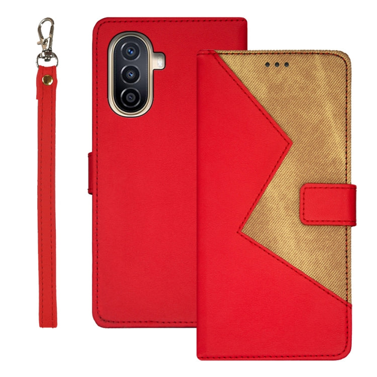 For Huawei nova Y71 idewei Two-color Splicing Leather Phone Case(Red)