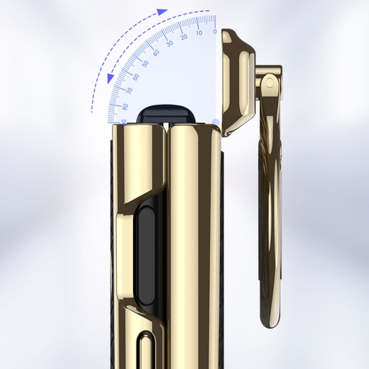 For Huawei Pocket 2 GKK Magnetic Shaft Electroplated Plain Leather Woven Texture Phone Case with Ring(Champagne Gold)