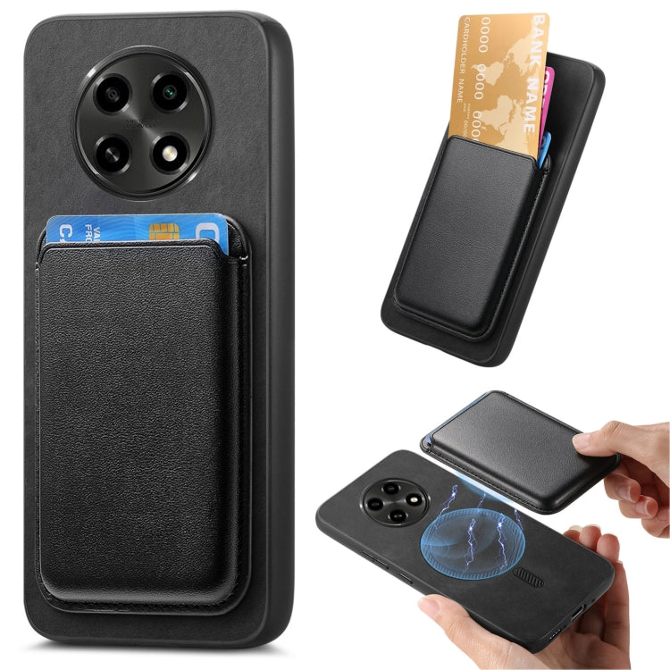For OPPO A3 Pro Retro Magsafe Card Bag PU Back Cover Phone Case(Black)