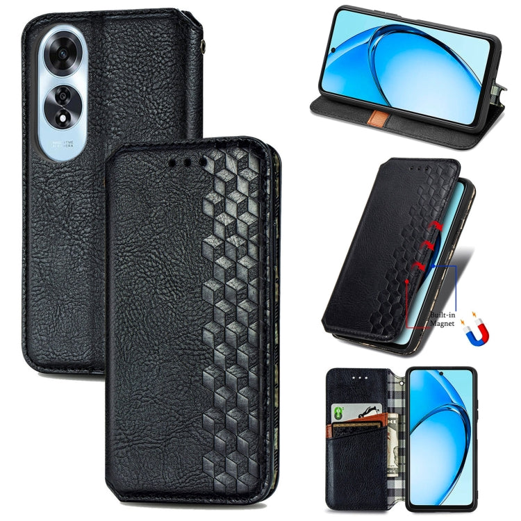 For OPPO A60 Cubic Grid Pressed Magnetic Leather Phone Case(Black)
