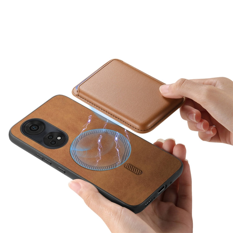 For OPPO A78 4G Retro Magsafe Card Bag PU Back Cover Phone Case(Brown)