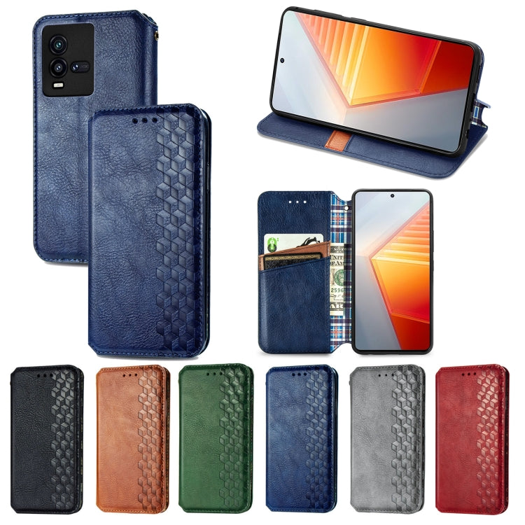 For vivo iQOO 10 Cubic Grid Pressed Magnetic Leather Phone Case(Green)