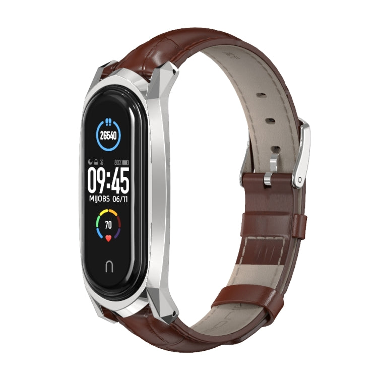 For Xiaomi Mi Band 6 / 5 / 4 / 3 Mijobs GT First Layer Cowhide Watch Band(Bamboo Joint Coffee+Silver)