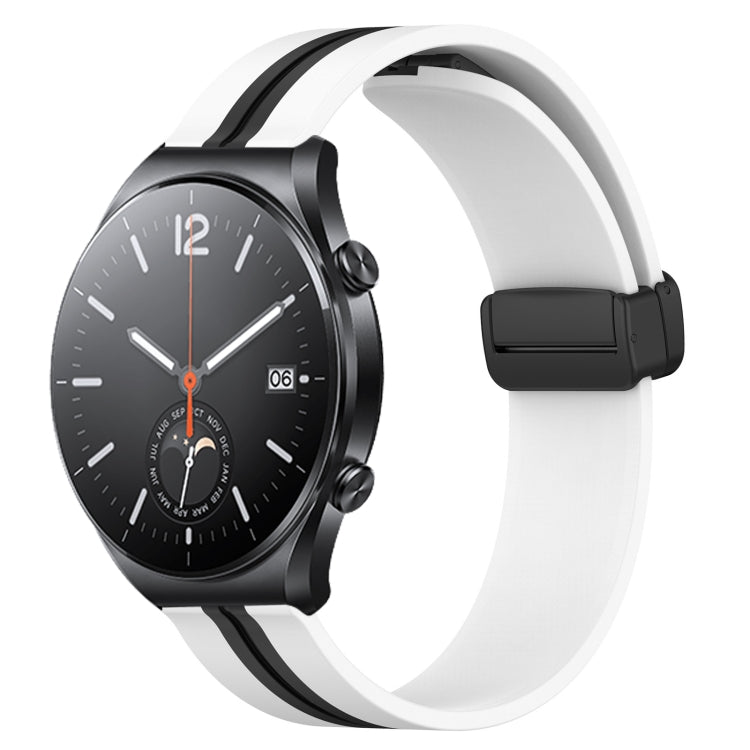 For Xiaomi MI Watch S1 22mm Folding Magnetic Clasp Silicone Watch Band(White+Black)