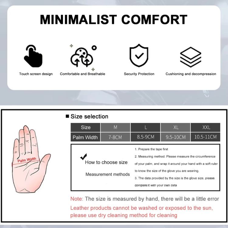 7. Palm width size: M 7-8cm; L 8.5-9cm; XL9.5-10cm; XXL10.5-11cm