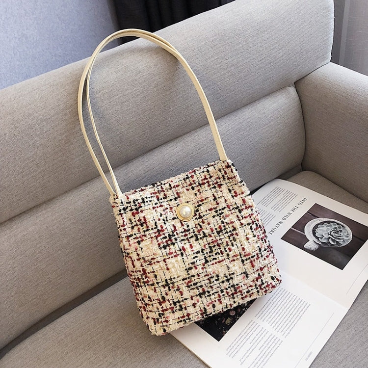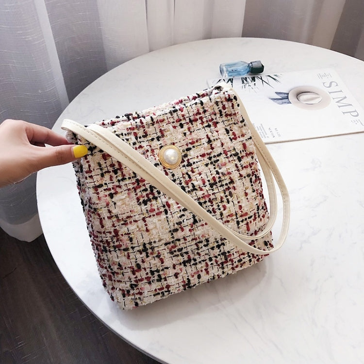 Woolen Knitted Pearl Bucket Single Shoulder Bag Ladies Handbag (Color:Black Size:OneSize)