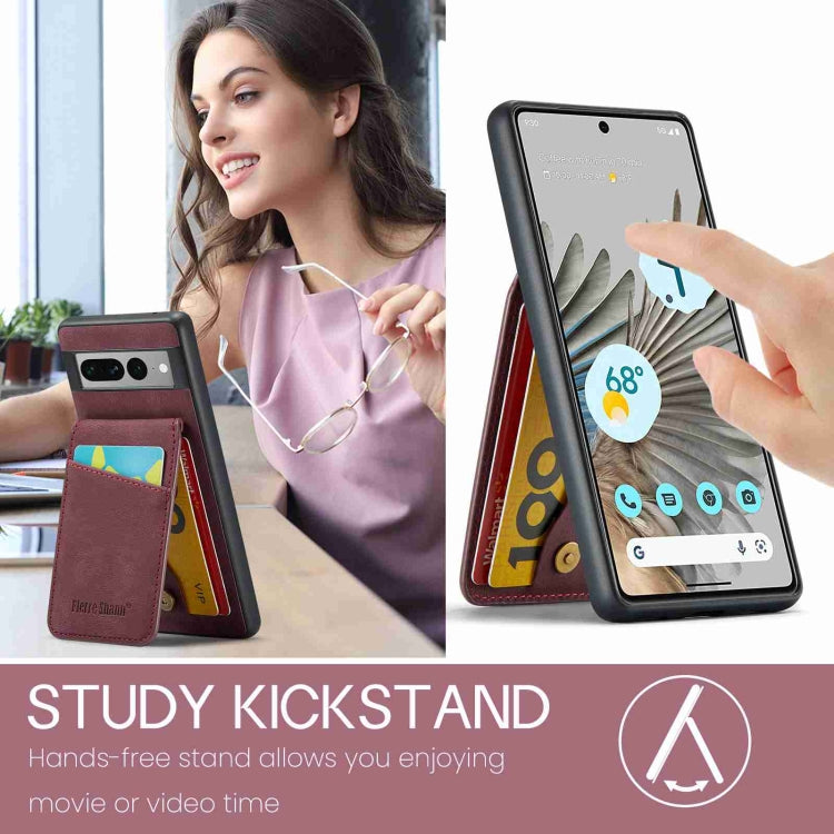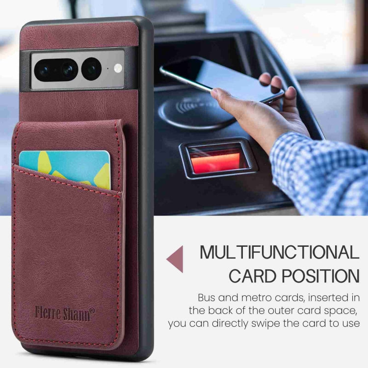 Étui arrière en PU avec porte-cartes pour Google Pixel 7 Fierre Shann Crazy Horse (rouge vin)