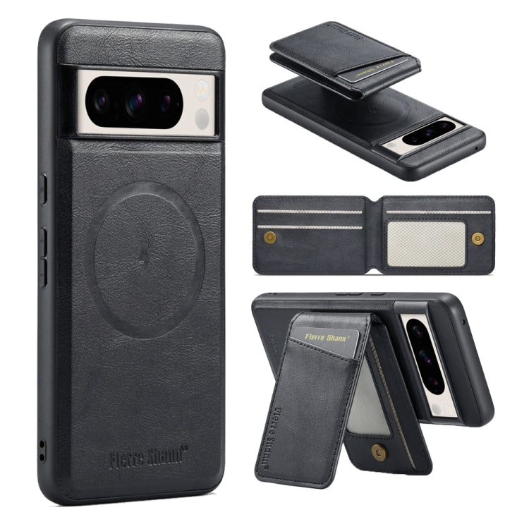 Étui à rabat vertical magnétique en cuir de vache pour Google Pixel 8 Pro (noir)