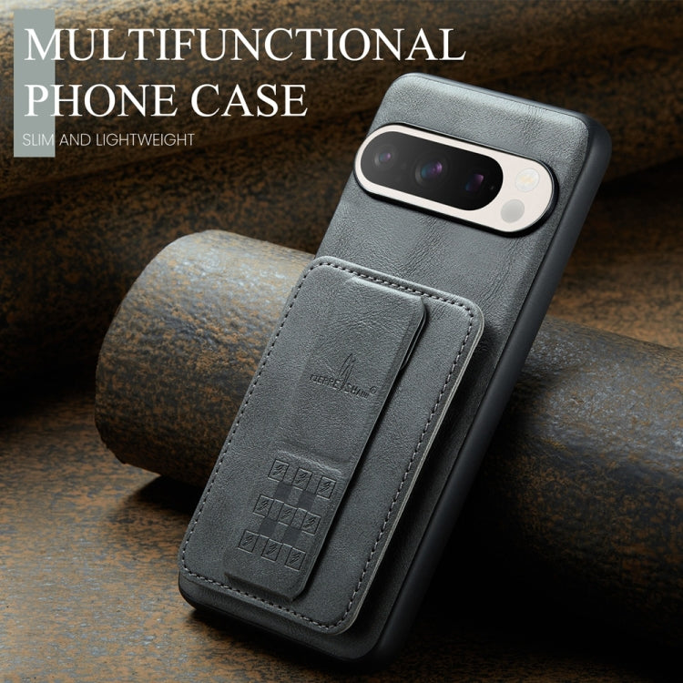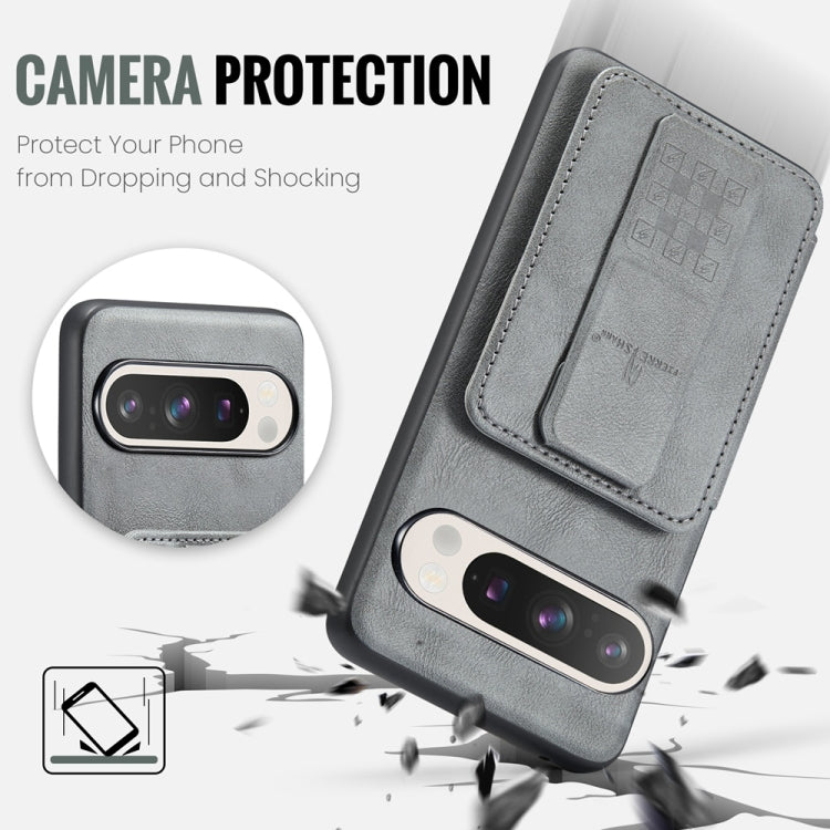 Étui arrière en cuir de vachette ciré et huileux pour Google Pixel 9/9 Pro (gris)