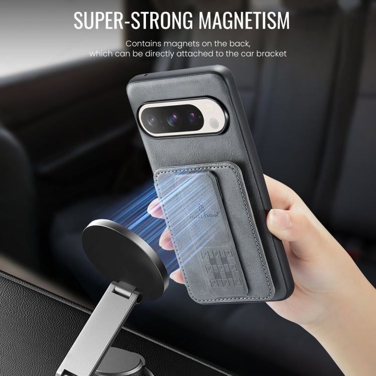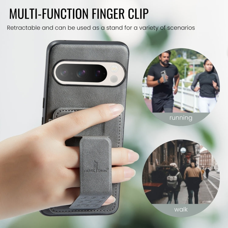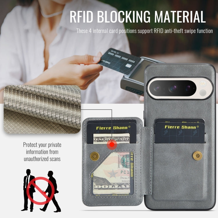 Étui portefeuille en cuir de vachette ciré et huileux pour Google Pixel 9 Pro XL (gris)