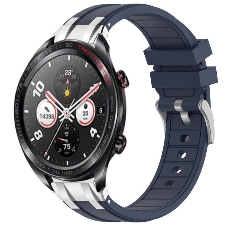 Bracelet de montre en silicone royal à boucle argentée et à dégagement rapide pour Honor Magic Watch 22 mm (bleu marine)