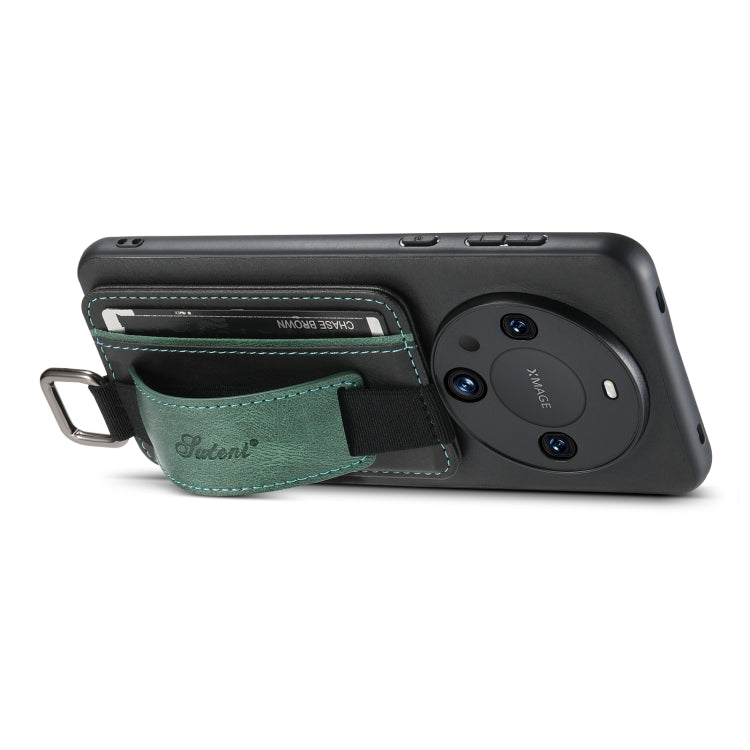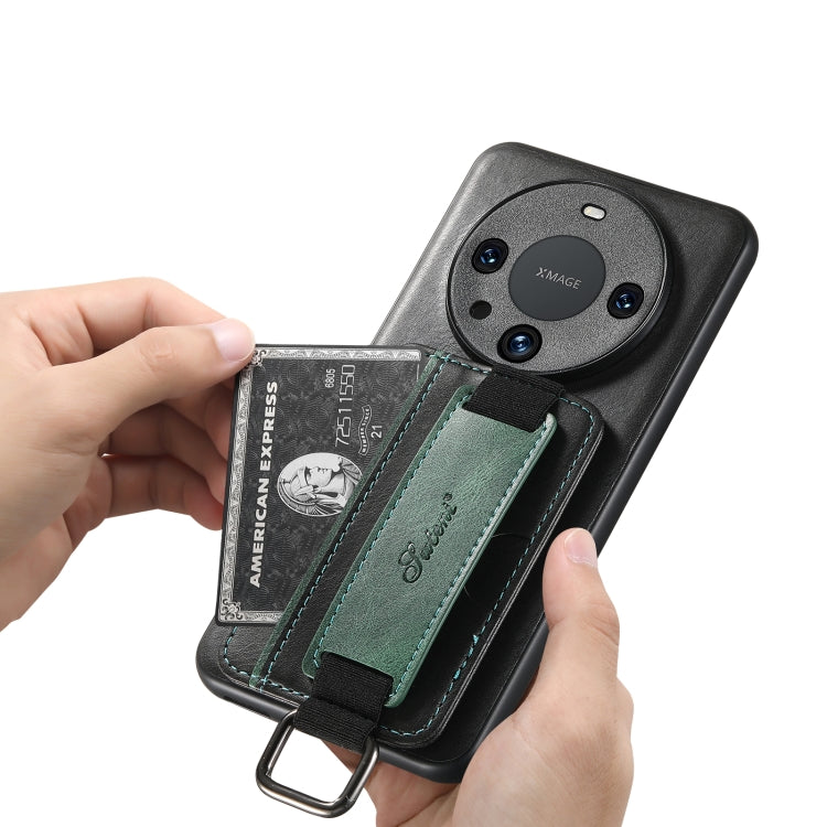 Étui portefeuille en PU avec dragonne et porte-cartes pour Huawei Mate 60 Pro+ Suteni H13 (noir)