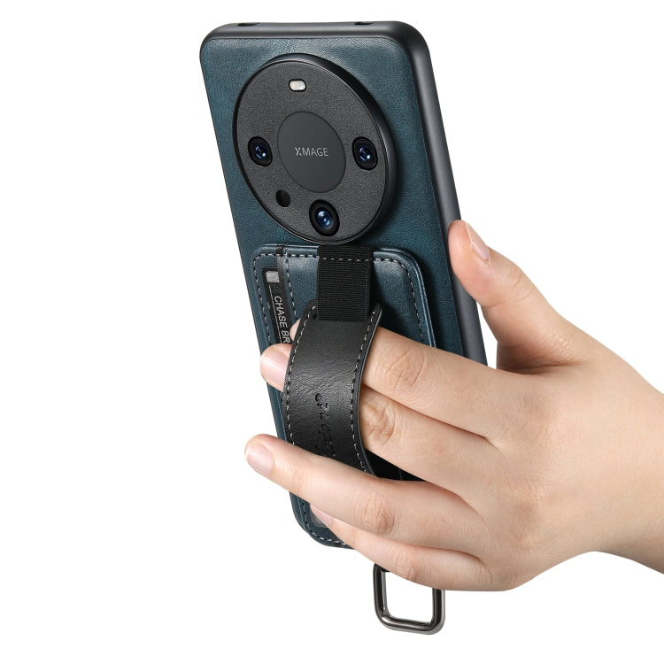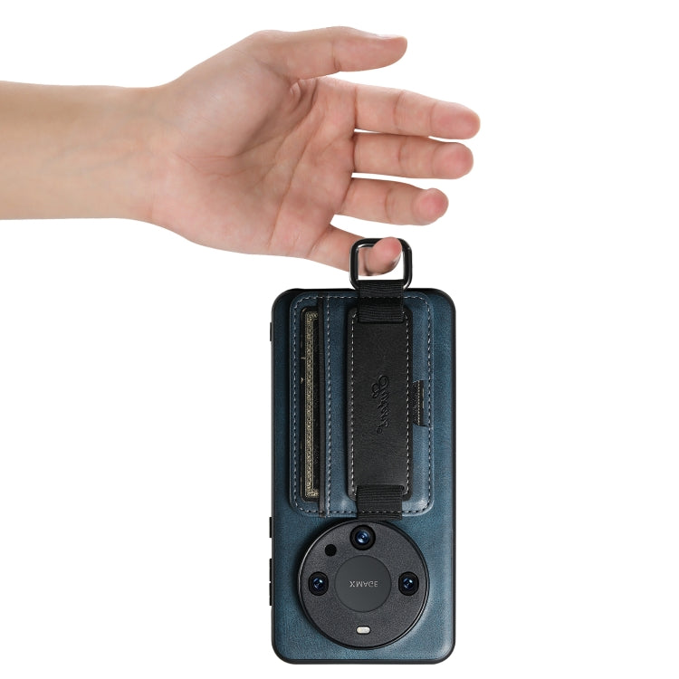 Étui portefeuille en PU avec dragonne pour Huawei Mate 60 Pro Suteni H13 (bleu)