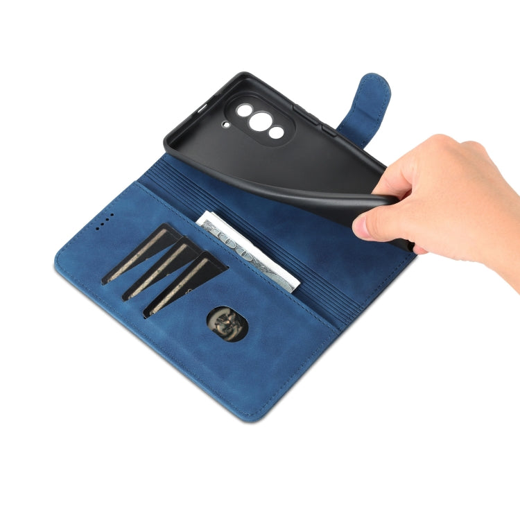Étui à rabat en cuir de veau texturé pour Huawei Nova 10 AZNS (bleu)