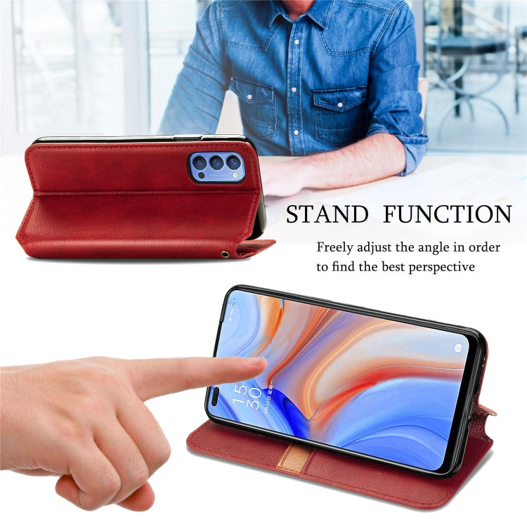 Étui en cuir PU magnétique à rabat horizontal pour OPPO Reno 4 4G, avec support, emplacements pour cartes et portefeuille (rouge)