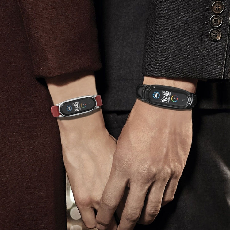 Pour Xiaomi Mi Band 6/5/4/3, boîtier métallique Mijobs, bracelet de montre en microfibre PU texturé Crazy Horse (noir)