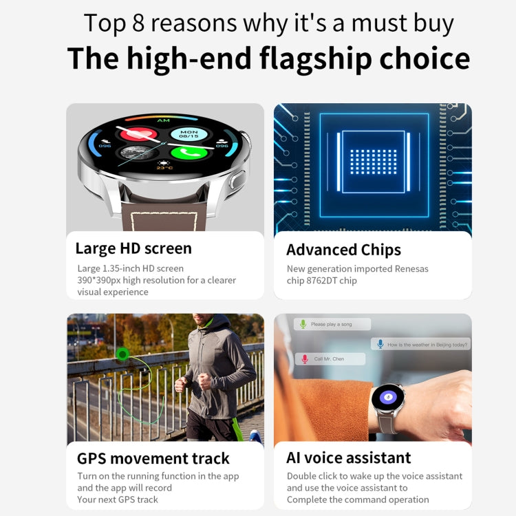 Montre connectée GW69, prise en charge des appels Bluetooth, de la fréquence cardiaque, de la pression artérielle et de l'oxygène sanguin (noir + bracelet en cuir noir)