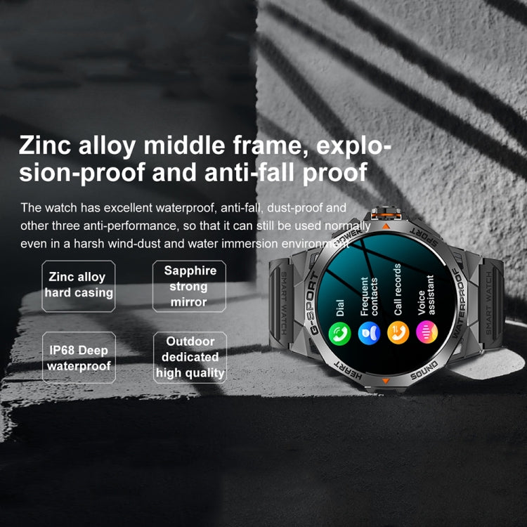 Montre connectée de sport K62, écran de 1,43 pouce, étanche, Bluetooth, appels, météo, musique, couleur : orange