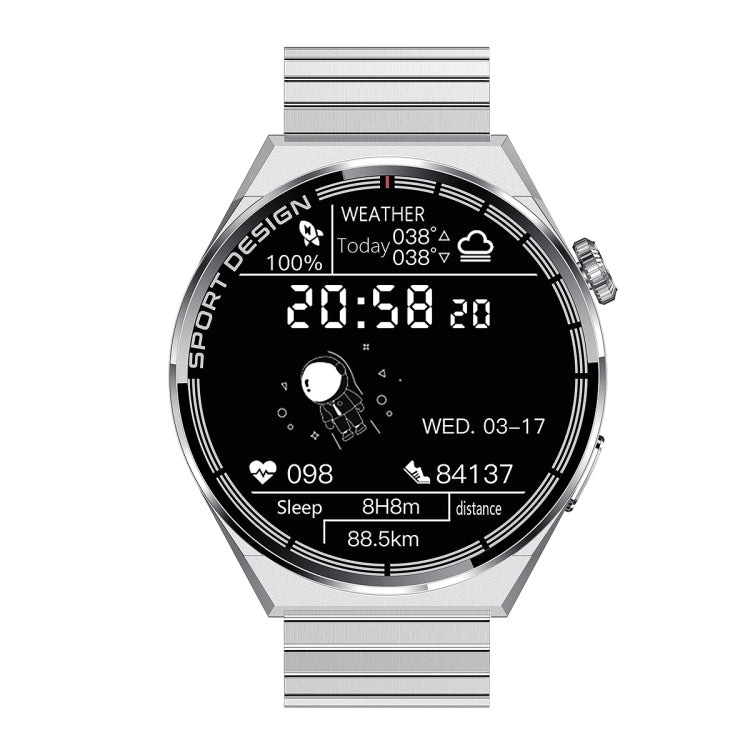 Montre connectée MD3MAX avec écran rond de 1,39 pouce et bracelet en acier, prise en charge de la surveillance de la fréquence cardiaque et de l'oxygène dans le sang (argent)