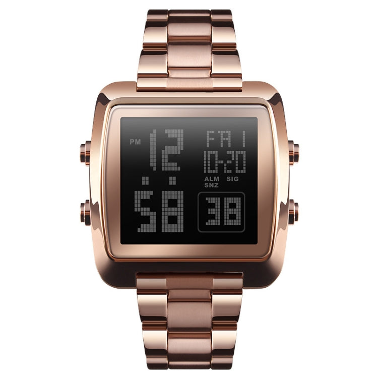 Montre rétro étanche SKMEI 1369 pour homme, bracelet en acier, lumineuse, carrée (or rose)